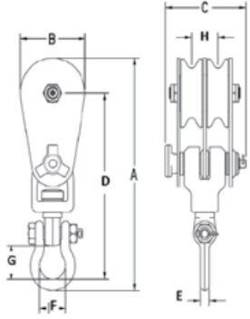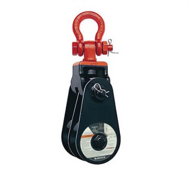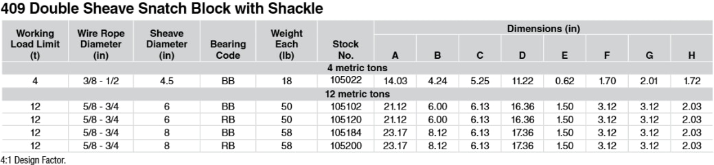 • Two sheave snatch block to allow for additional mechanical advantage, must be reeved with four parts of line
