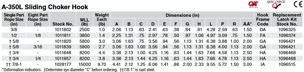 Crosby Alloy Sliding Choker Hook with Latch, 3/4" Size, 8,200 lbs. WLL, A-350L