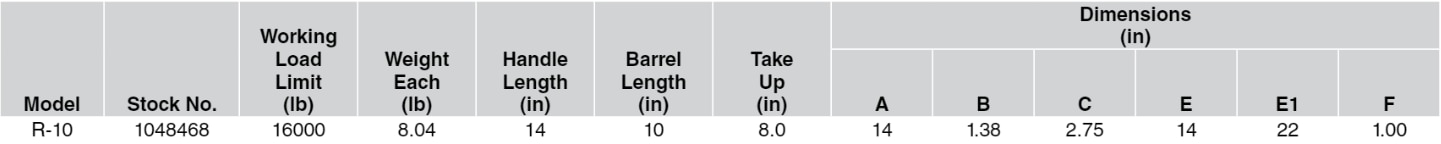 Crosby Ratchet Type Load Binder with No Links and Hooks, 16,000 lbs. WLL, R-10