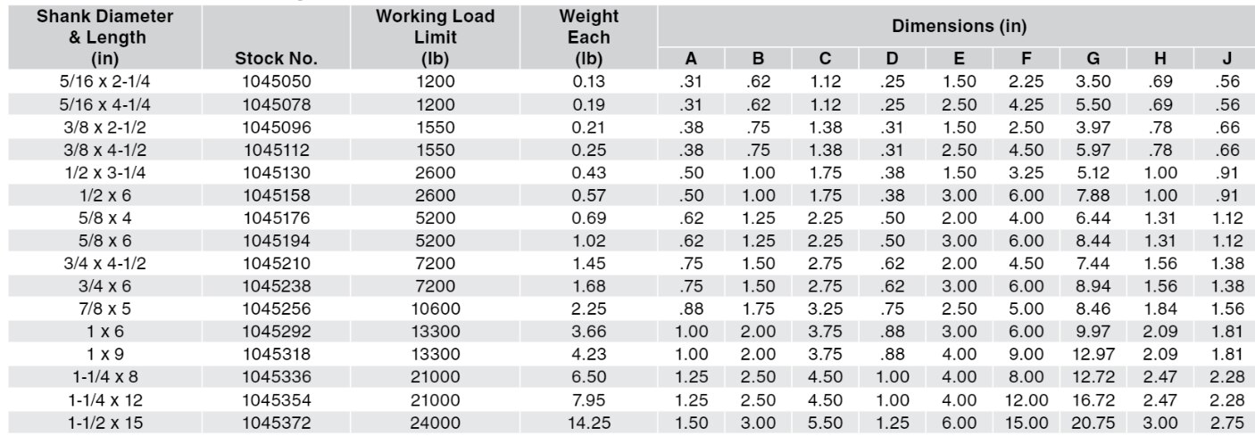 For added protection against corrosion, the eye bolts are hot-dip galvanized after threading (UNC). Additionally, they come furnished with standard hot-dip galvanized, heavy hex nuts, providing a complete setup.