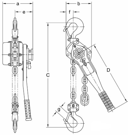 The top and bottom hooks rotate 360 degrees. The spring-loaded freewheel mechanism permits easy adjustment of the load chain and safeguards against accidental freewheeling under load. It features a Weston-style load brake, and includes two brake pawls.